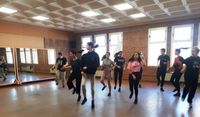 2 de les aules amb miralls i equip de so per les classes de dansa, claqué i expresió i una tercera amb equip de so i teclat per les classes de cant.